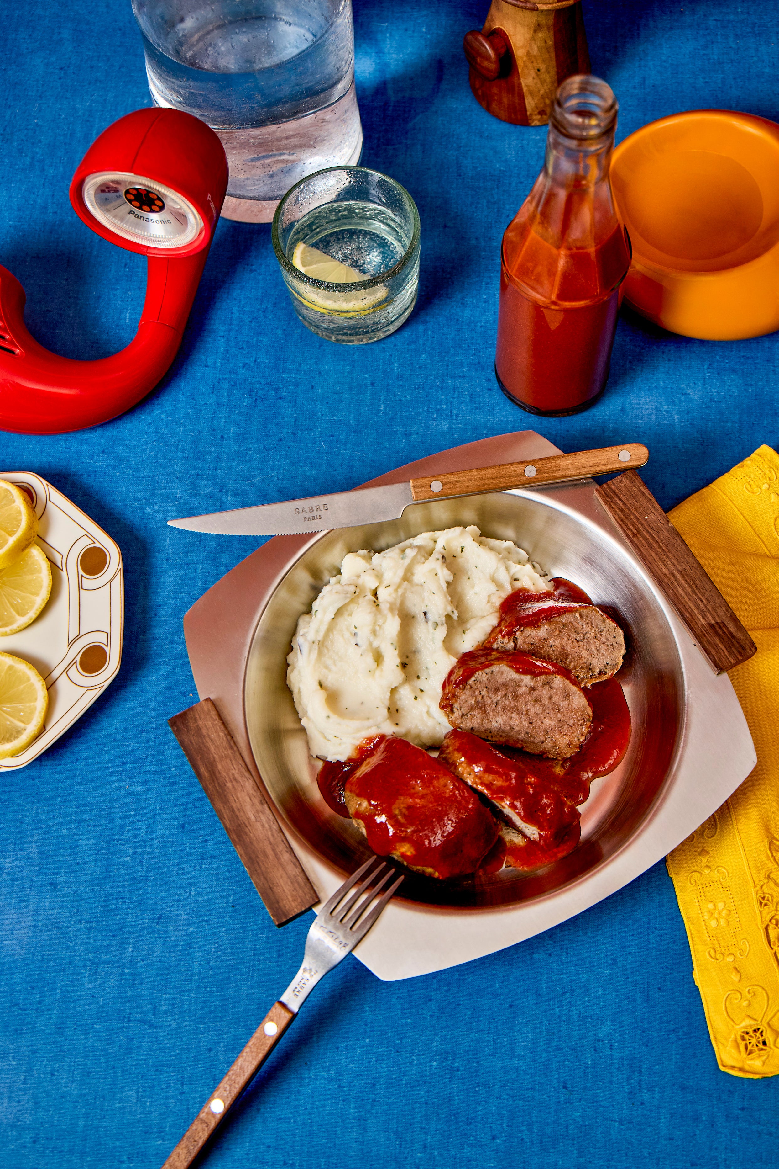 Bison meatloaf with chipotle glaze and herbed mashed potatoes.